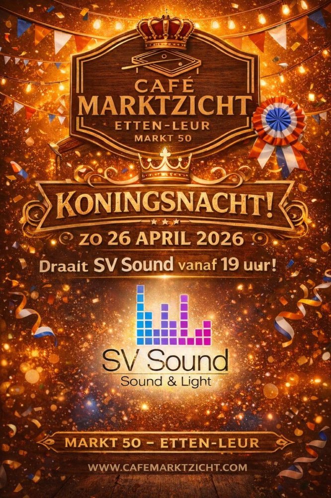 Koningsnacht, zondag 26 april vanaf 19.00 uur bij Marktzicht muziek van SV Sound.