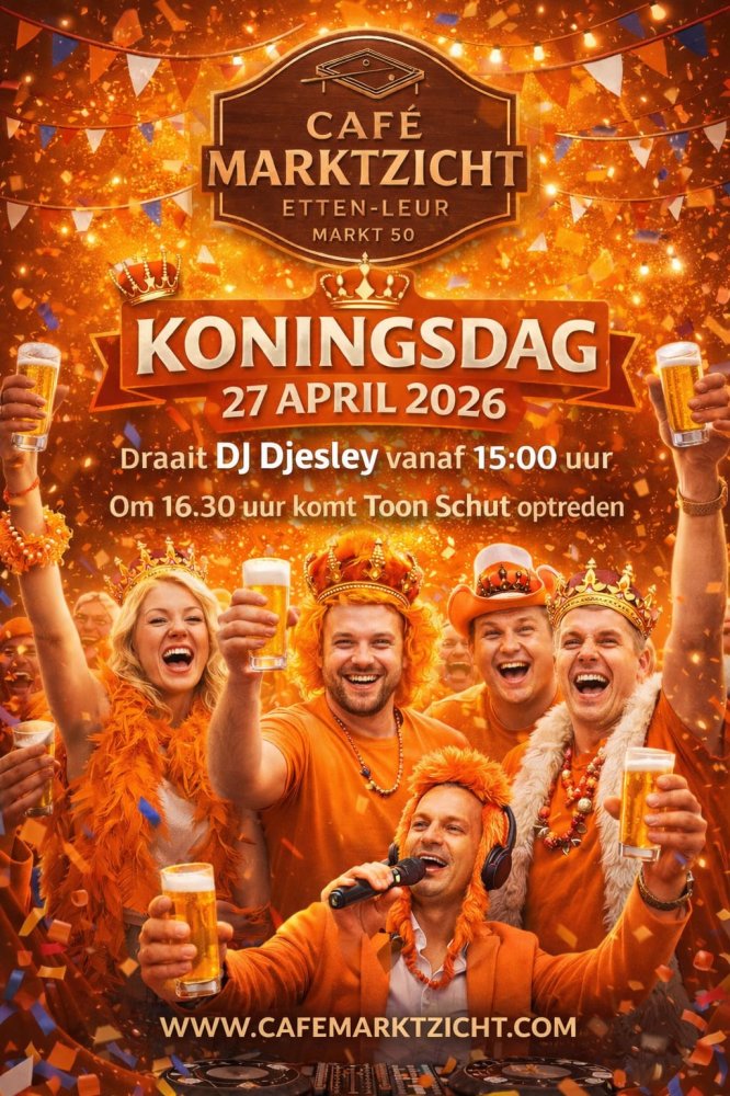 Deze dag verdient een kroon! Vanaf 15 uur DJ Djesley, om 16.30 uur gaan we los met een optreden van Toon Schut.
