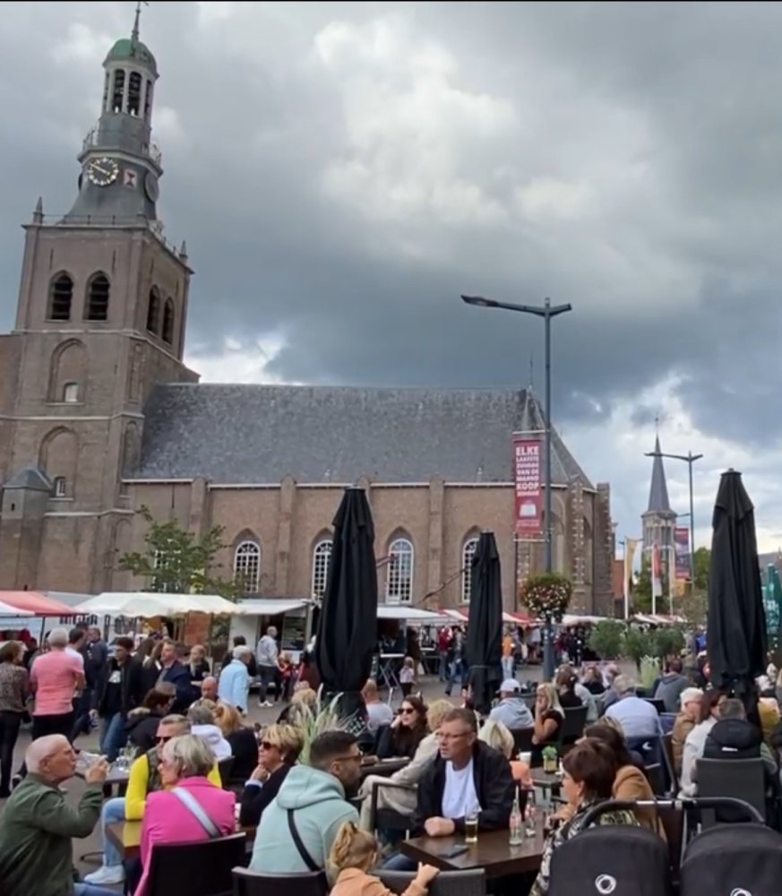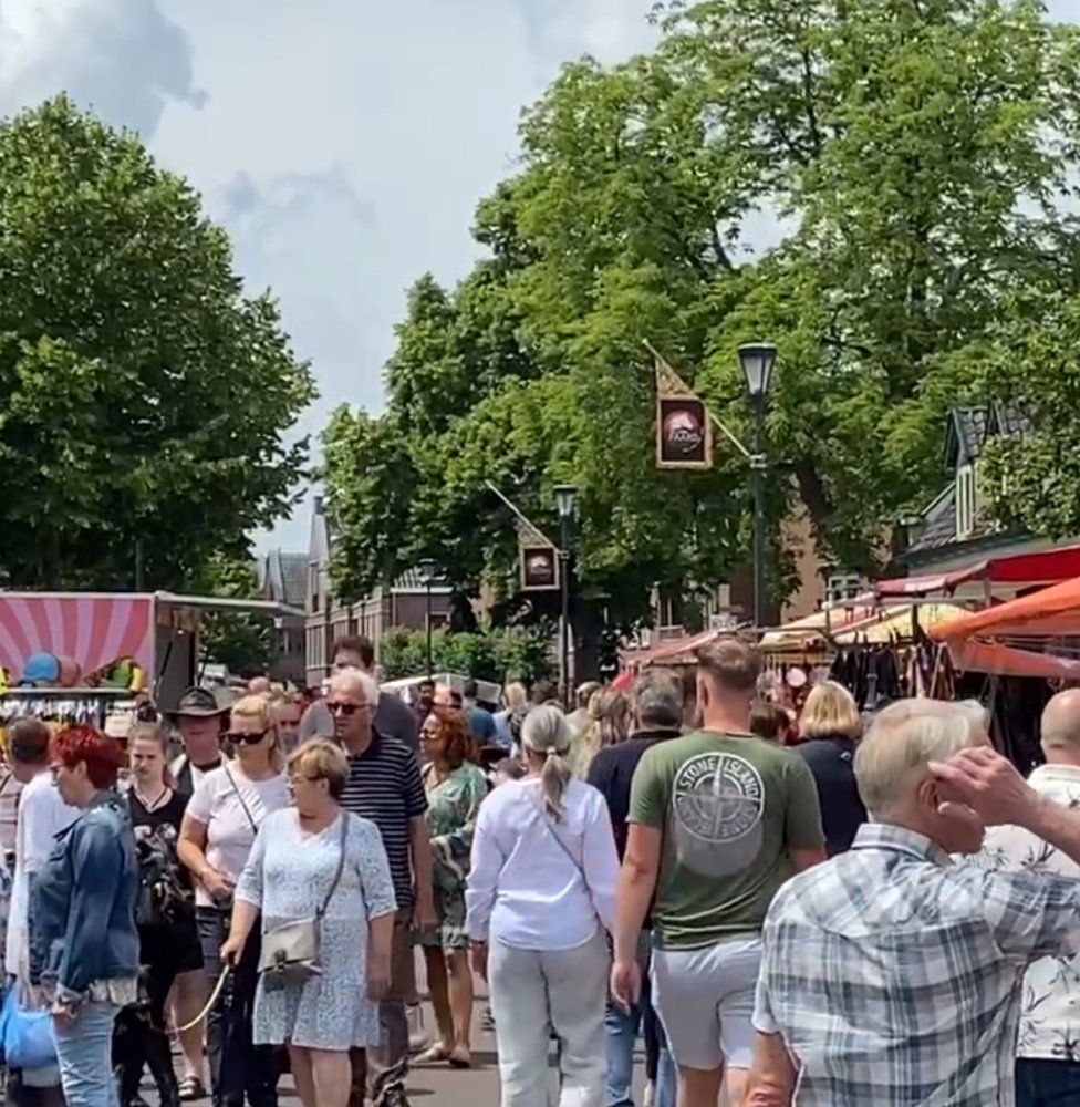 Oldtimer trekkers zijn weer aanwezig op het gras middenstuk van de Markt en ook de nodige standwerkers zijn present.