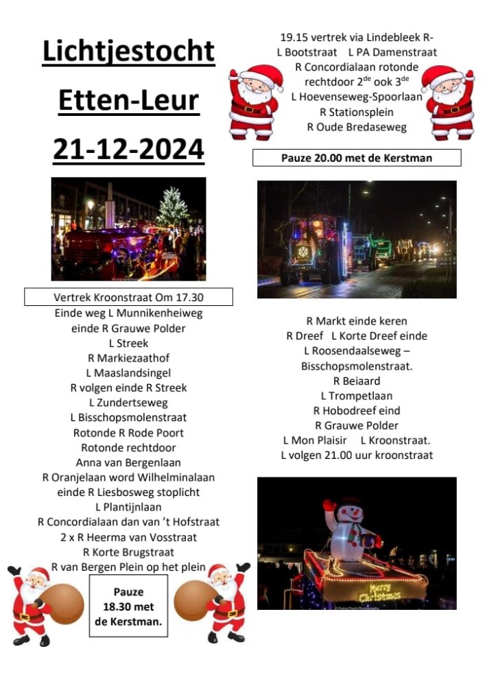 Zaterdag 20 december voert er weer een prachtig verlichte optocht door Etten-Leur. Lees verder