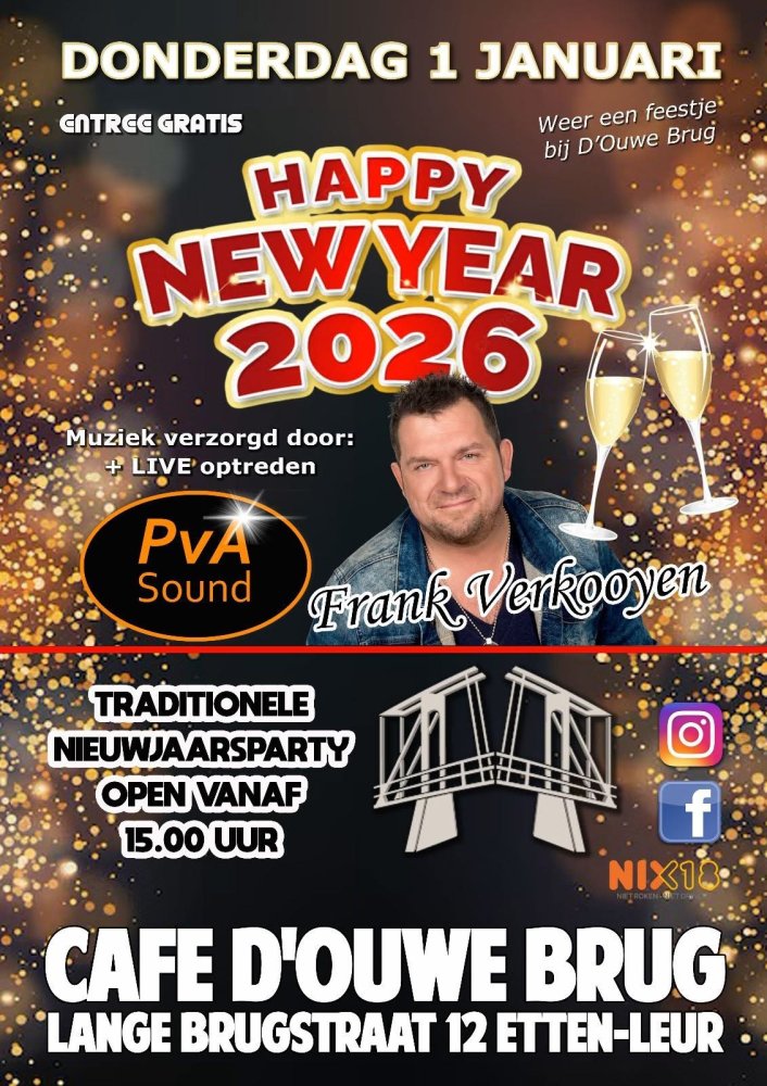 Op 1 januari is er vanaf 15.00 uur een Nieuwjaarsparty in café D'Ouwe Brug. Er is dan een live optreden van Frank Verkooyen.