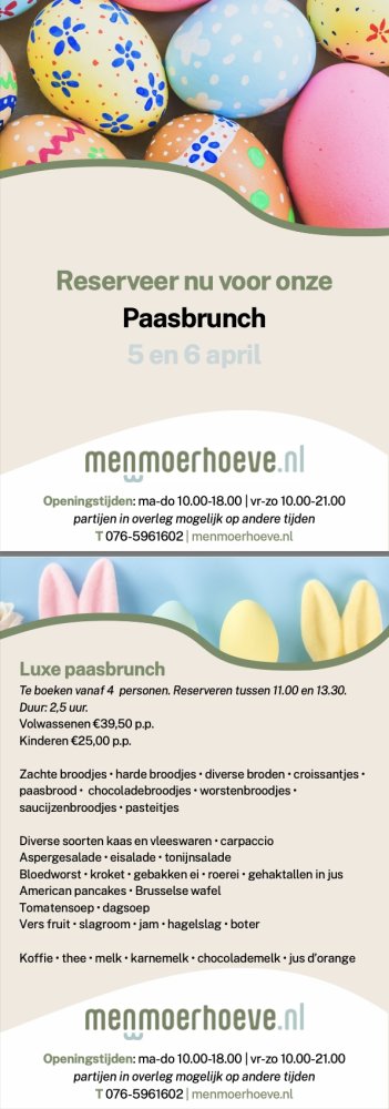 Reserveer een plekje bij onze horeca voor een paasontbijt, -brunch of -diner.