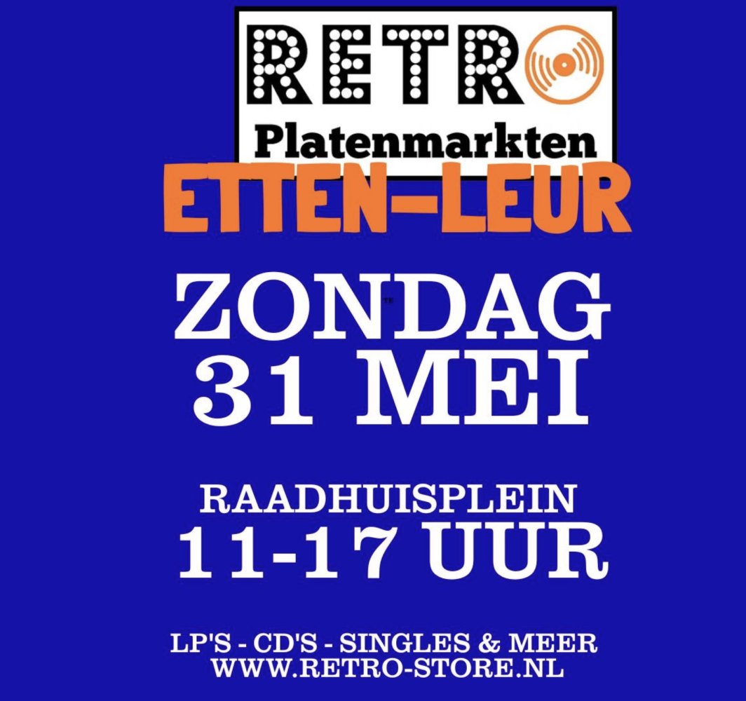 Op zondag 31 mei is er een retro platenmarkt met een groot aanbod aan vinyl, lp's, singles en cd's op het Raadhuisplein in Etten-Leur.
