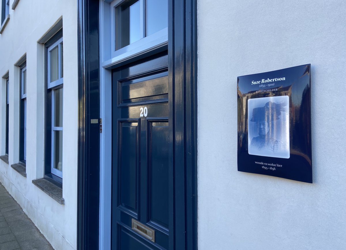 Suze Robertson woonde en werkte tussen 1895 en 1898 aan de Lange Brugstraat 20. Op de gevel van dit huis werd op haar 100ste sterfdag (18 oktober 2022) een plaquette aangebracht door wethouder van cultuur René Verwijmeren. Gelijktijdig opende de expositie in het Trouwkerkje.