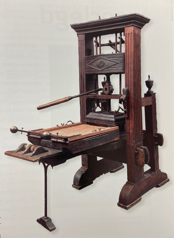 Het museum uit Etten-Leur is in het bezit van een unieke houten drukpers uit 1760. Het betreft een prachtig en uniek exemplaar. De drukpers is volledig in tact en er kan nog steeds mee op gedrukt worden.