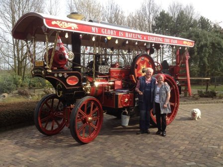 Buiten rijden verschillende stoomtractoren en draaien ook motoren.