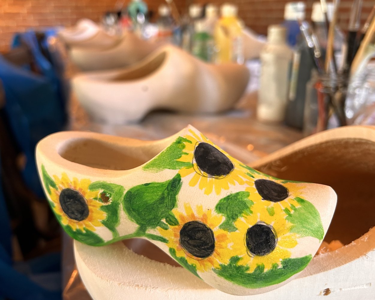Dat kan tijdens de workshop 'Klompschilderen met zonnebloemen'.