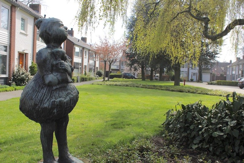 Met een licht opgeheven hoofd kijkt ze uit op het plein. Wat vraagt ze zich af? Waar wacht ze op? In haar armen en gedeeltelijk onder haar blouse verscholen, koestert ze een pop. Op een gemetselde sokkel staat dit bronzen beeldje van Theo Forrer (1923-2004). Het is hier rond 1963 geplaatst. Het meisje haar opvallende ballonvormige rok duidt waarschijnlijk op de in die tijd veel gedragen petticoat. Lees verder