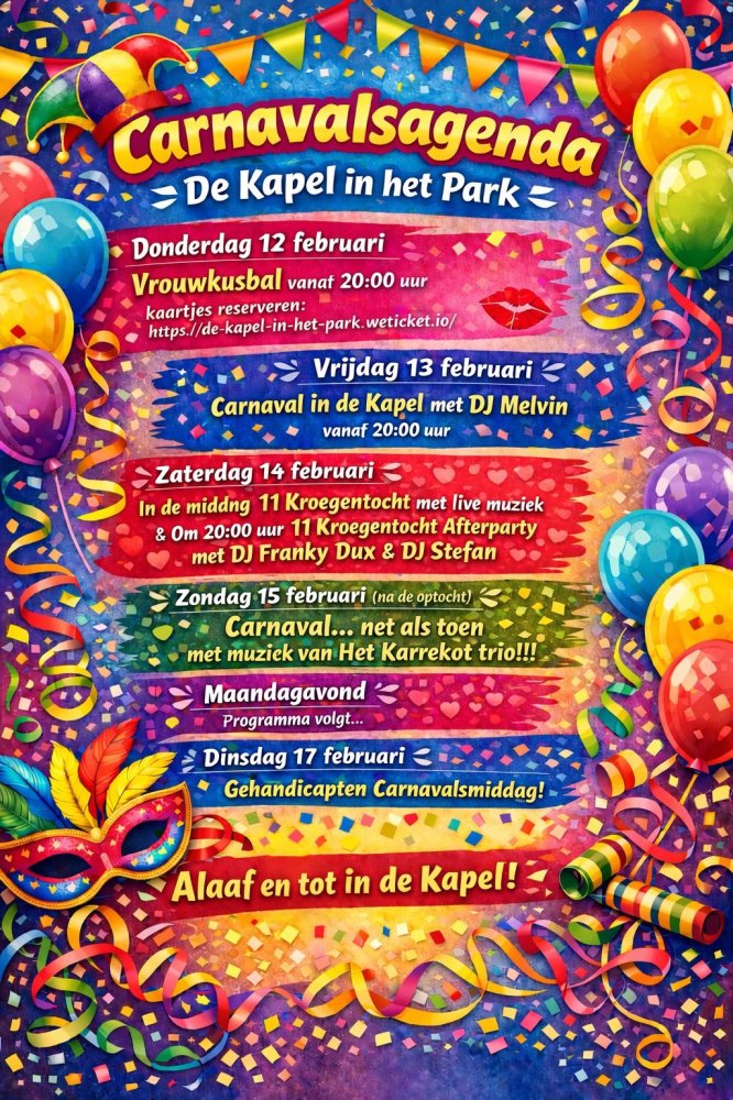- 14 februari, 13.00-19.00 uur: prijsuitreiking Kinderoptocht. Info volgt.