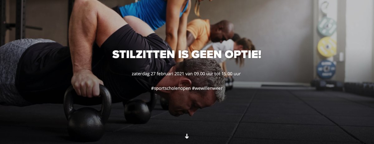 Vind jij ook dat wij zo snel mogelijk weer open moeten? Kom dan zaterdag 27 februari 2021 sporten. Maak samen met ons een vuist voor de heropening van de sportclubs in het belang van de volksgezondheid. Uiteraard zullen we tijdens deze ochtend alle corona-maatregelen in acht nemen.