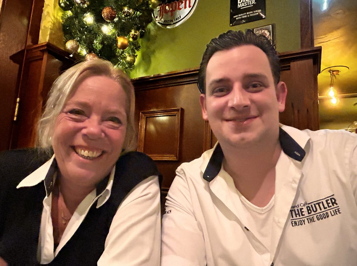Jessy's kennis, kunde en enthousiasme was voor Daisy doorslaggevend om per 1 januari aanstaande te stoppen. "Het is een goed moment. Anders was ik nog wel een paar jaar doorgegaan." Alle vertrouwen dus in Jessy Pertijs, die ontzettend veel zin heeft in deze nieuwe uitdaging. "Maar ik vind het ook wel spannend. Goed dat Daisy hier nog een half jaar over de vloer komt. The Butler heeft gewoon een heel goed concept en we gaan dus op dezelfde voet verder. Het voelt hier goed", aldus de 27-jarige Pertijs die al sinds zijn afstuderen aan de horecaopleiding bij de Rooipannen in Breda bij The Butler werkt. "Wat mij bijvoorbeeld zo aanspreekt, is het feit dat we gasten hebben in de leeftijd van 18 tot 88. Die mix is super fijn!"