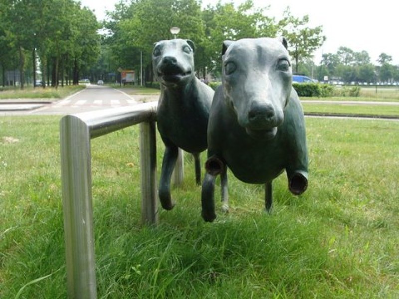 De Jacht op de rotonde Parklaan-Schoonhout. Het is in 2005 gemaakt door Thom Puckey. Het bestaat uit 52 echte bomen (iepen), 4 aluminium bomen en 8 bronzen hazewindhonden.