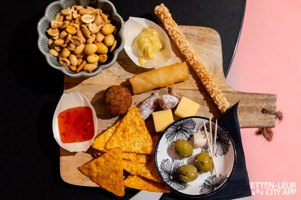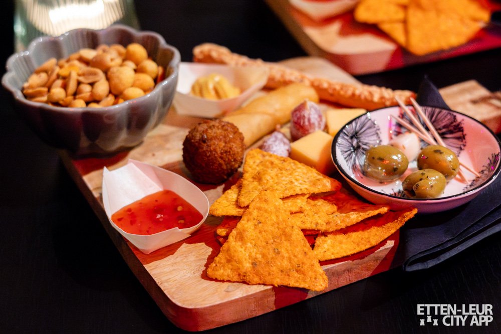 Wij hebben de vega en de normale borrelplank besteld. Een verrassende mix van smaakvolle fingerfood. Er is een variatie aan kaasblokjes met dip, bitterbal, worstjes, loempia, kaasstengel, nootjes, olijven en nachos. De vega plank lijkt veel op de gewone borrelplank. I.p.v. de bitterbal lag er een kaassoufflé. De borrelplanken dragen bij aan de totaal beleving van de avond.