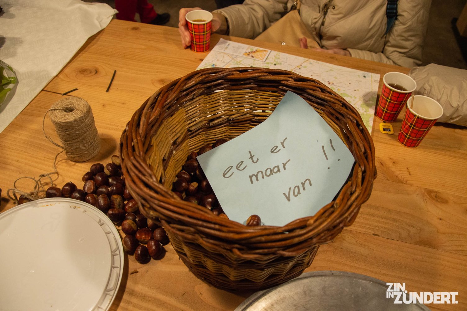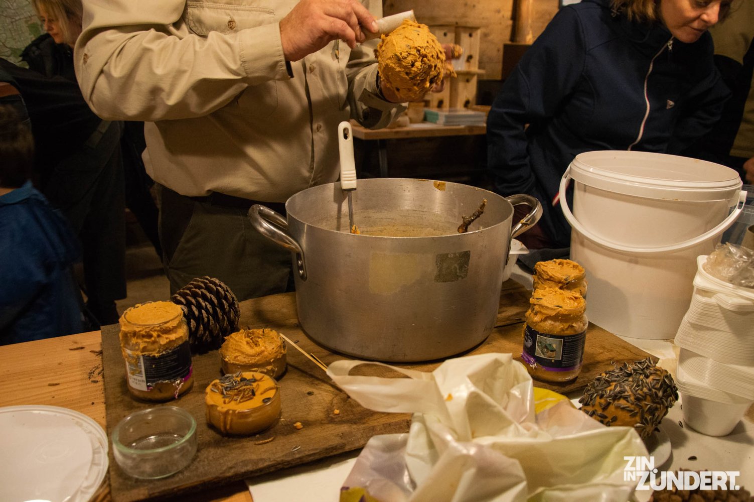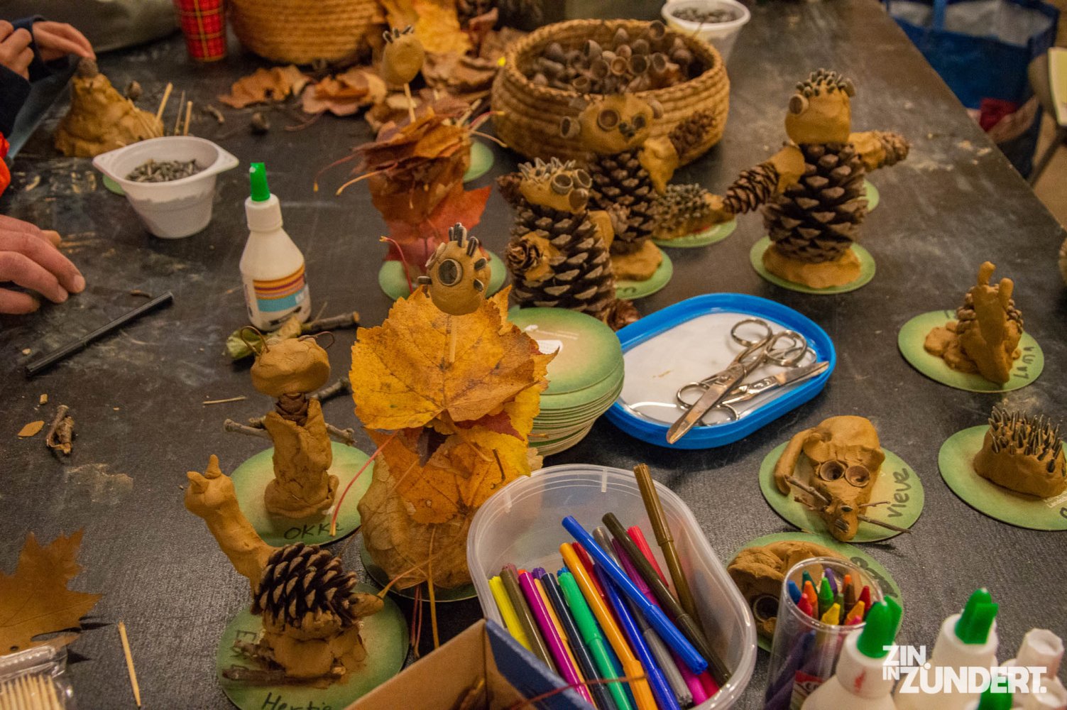Eenmaal terug bij de Zwarte Schuur is het nog steeds erg druk. Kinderen zijn weer volop aan het knutselen, maar hebben ondertussen ook de weg naar buiten gevonden. "Woody's avonturenpad", wordt volop bewandeld. Een vrijwilliger is ondertussen bezig met het maken van vogelvoer-bollen met pindakaas, zaden en noten.