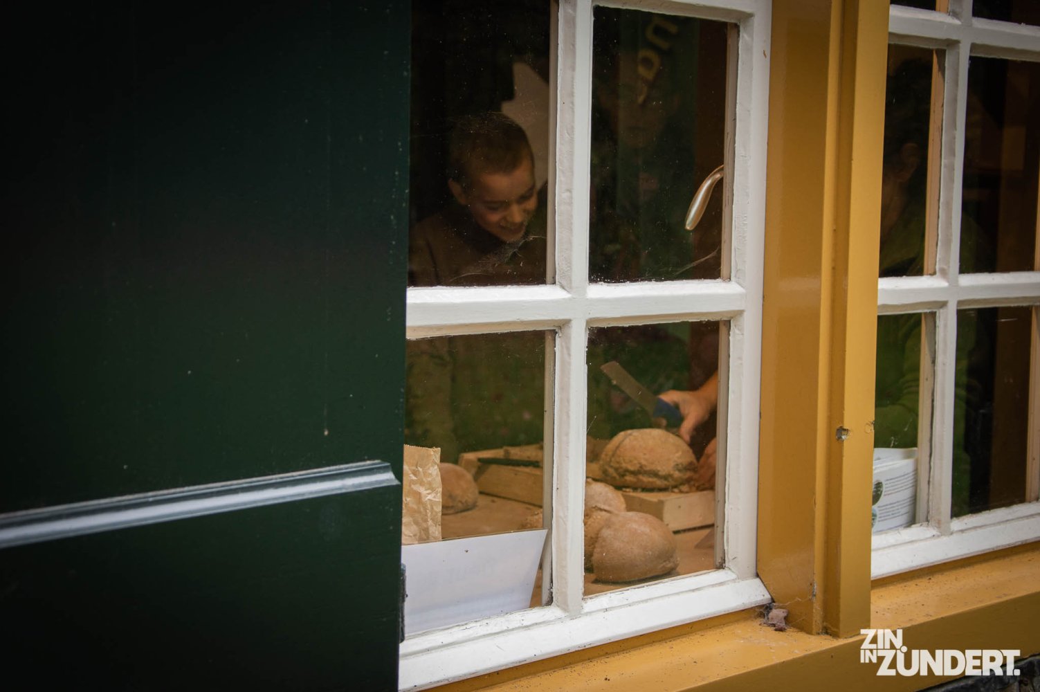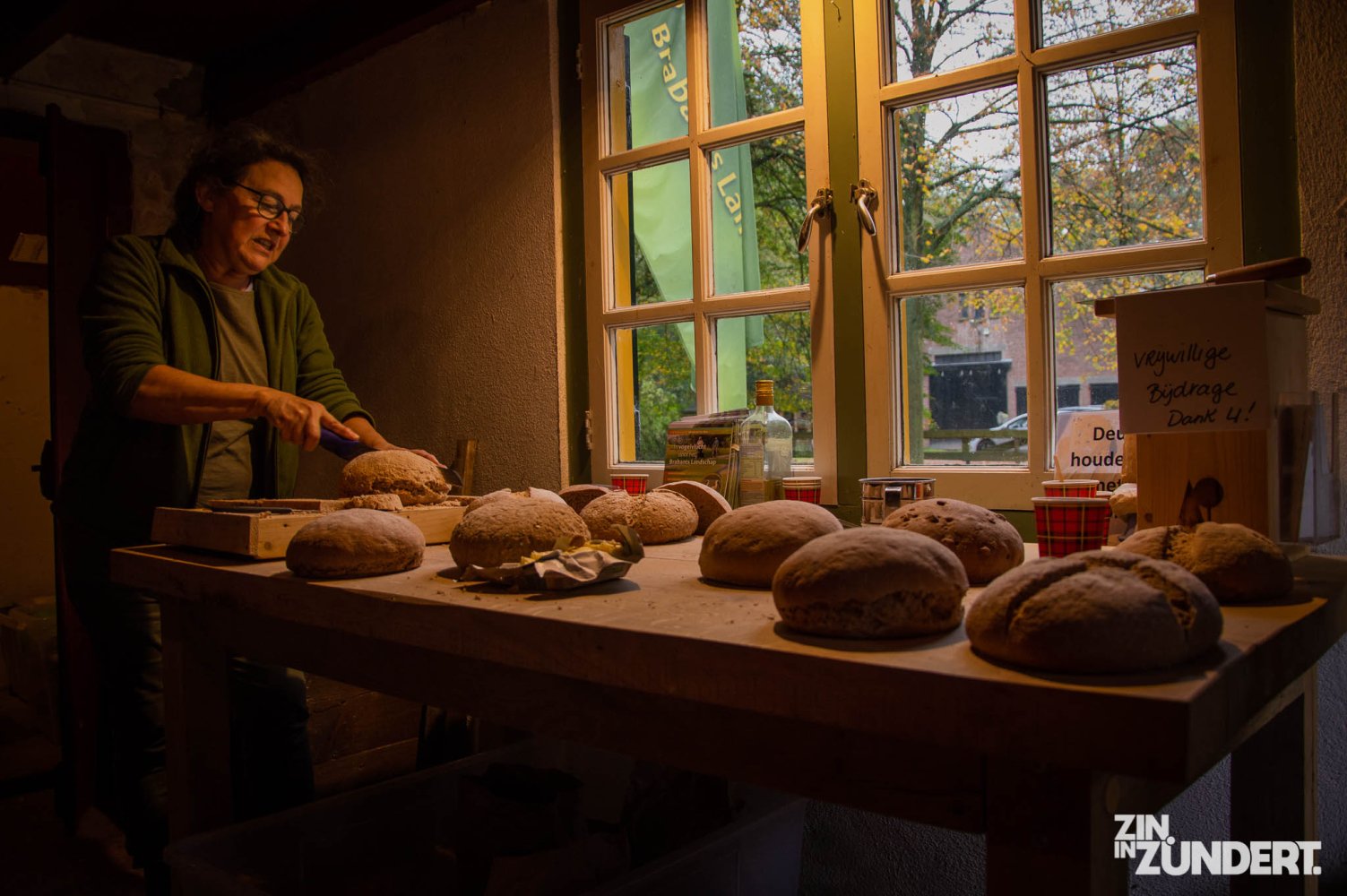 Er valt van alles te zien en te beleven op zo'n zondag bij de Zwarte Schuur. Een heerlijke geur van versgebakken brood komt ons vanuit het oude bakkershuisje, dat naast de Zwarte schuur staat, tegemoet. Binnen liggen de broden op tafel. Mooi rond en robuust gebakken in de oude, of hout gestookte oven van het huisje. Bezoekers mogen ter plekke een stukje proeven, of zelfs een halfje brood mee naar huis nemen. Natuurlijk proeven wij ook een stukje brood, we kiezen voor de spelt en het notenbrood. Het brood is heerlijk, je proeft echt dat het vers en ambachtelijk is!