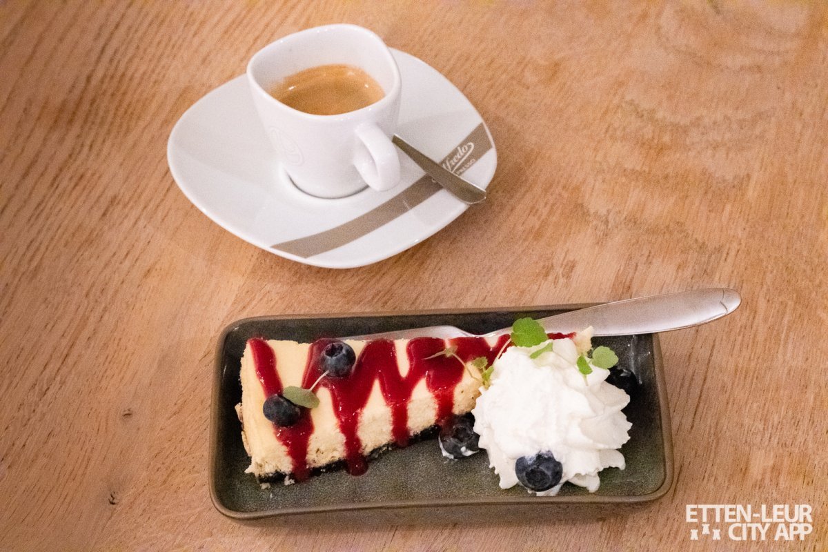 We sluiten de avond af met de cheesecake van citroen en limoen op een oreo bodem met een espresso. De zachte mouse van de cheesecake voelt heerlijk aan in de mond. Sanne vertelt ons dat dit nagerecht een van haar signature dish is.