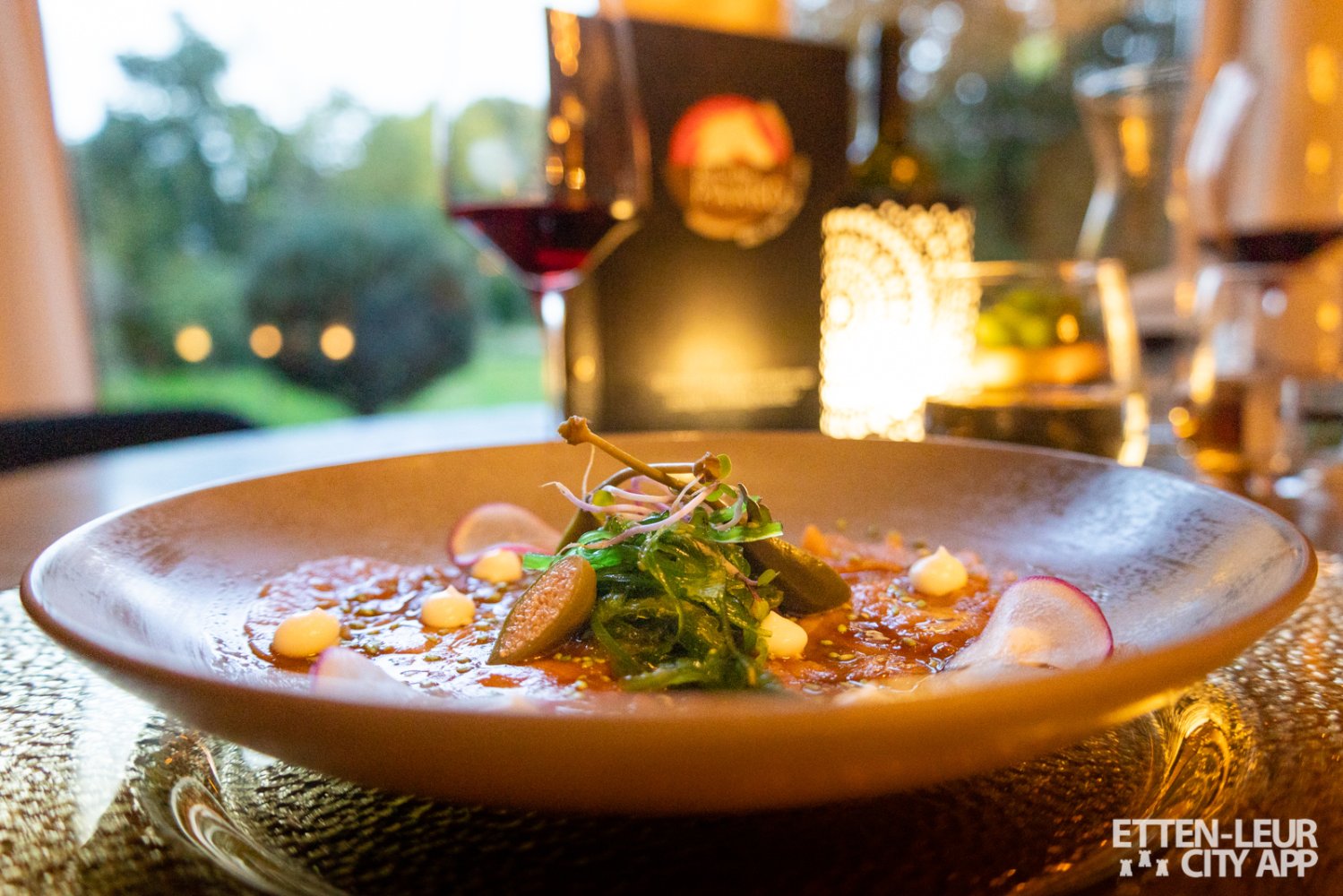 Vanavond zijn wij uitgenodigd in Etten-Leur bij restaurant Het Witte Paard, wat tevens ook een hotel is. Het sfeervolle restaurant is gezellig gemaakt met muziek en gaf een warm binnenkomst. Het vriendelijke personeel geeft ons een mooi plekje met uitzicht over het park.
