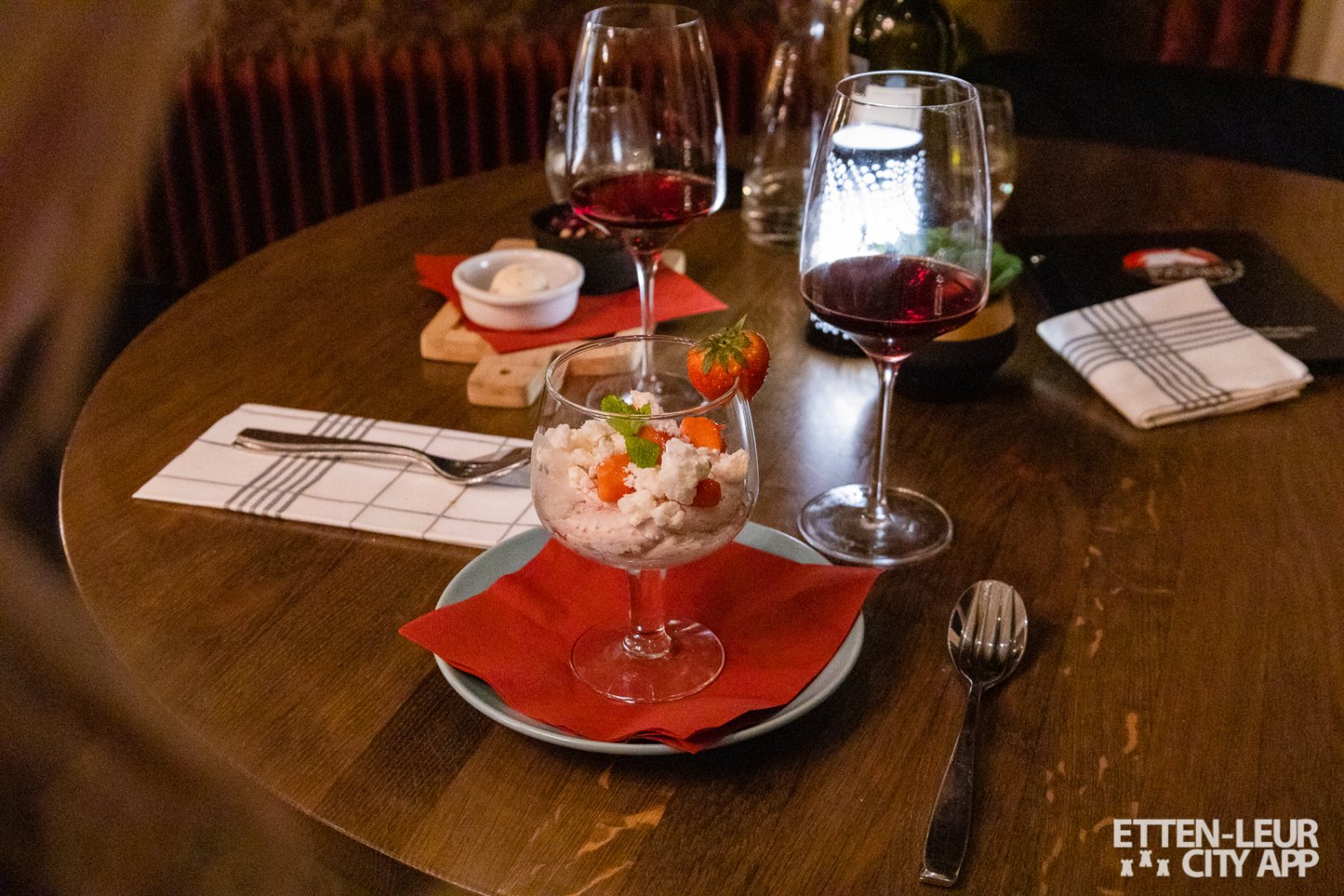 Naast de cheesecake verscheen een romanoff met verse aardbeien. De romanoff zoet van smaak en fruitig door de aardbei. We sloten de avond af met een fijne avondwandeling, het was een warme herfstavond en we kijken terug op een gezellige avond met het vriendelijke personeel van Het Witte Paard.