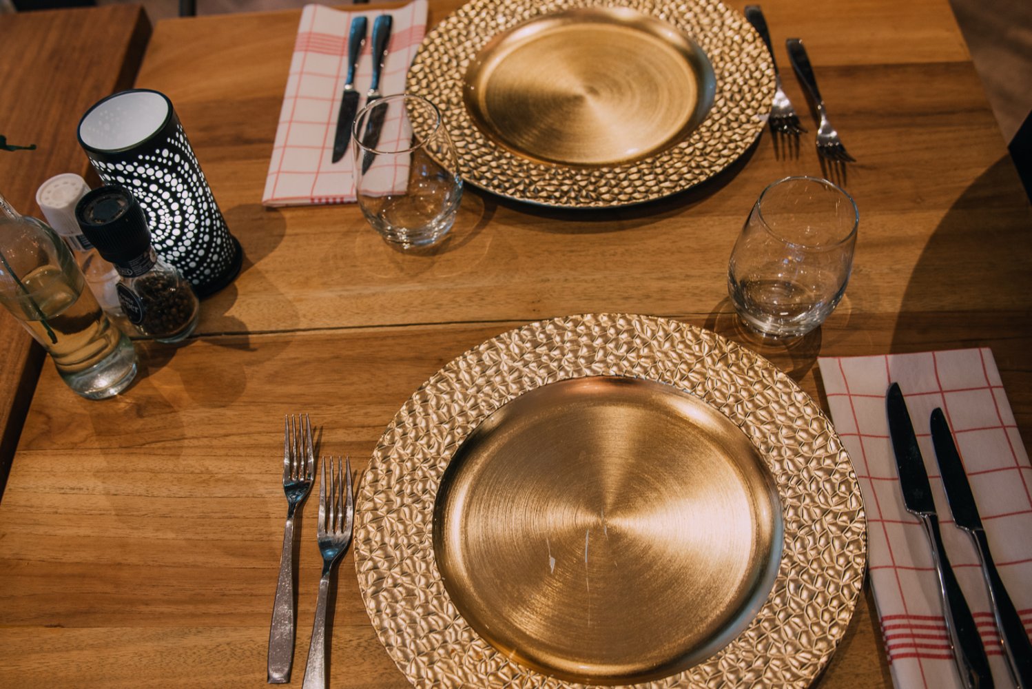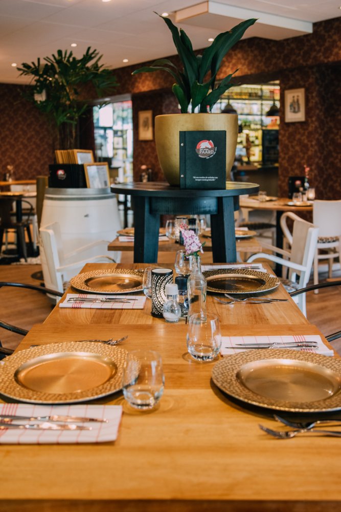 Bij binnenkomst maken we kennis met Simon, onze vriendelijke gastheer. Het Witte Paard beschikt over een terras, restaurant en café. Simon stelt voor dat we plaatsnemen in het restaurant vanwege de verwachte onweer deze middag. En wat is het restaurant toch prachtig! Oud en modern worden hierbinnen gecombineerd kijkend naar het interieur. De tafels zijn gedekt met mooie gouden borden die ons meteen opvallen, de muren zijn gevuld met veel schilderijen en hebben daarnaast een bordeaux rood barokstijl behang. Ook staan er veel groene planten in het restaurant. Mijn moeder en ik kijken onze ogen uit! Wij krijgen een mooie plaats toegewezen met uitzicht op het park van Etten-Leur. Op de achtergrond wordt rustgevende muziek gedraaid, we komen hier echt even tot rust.