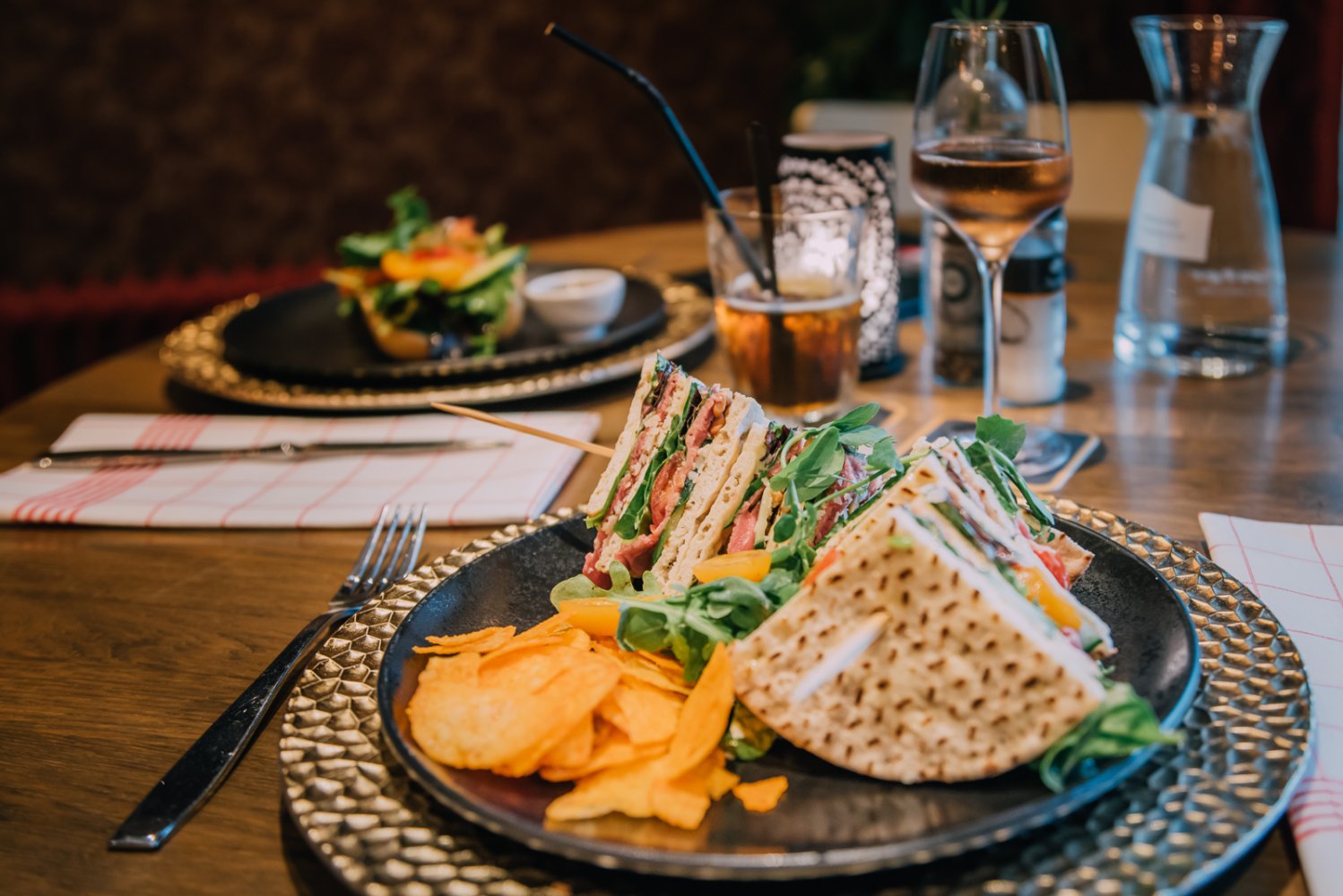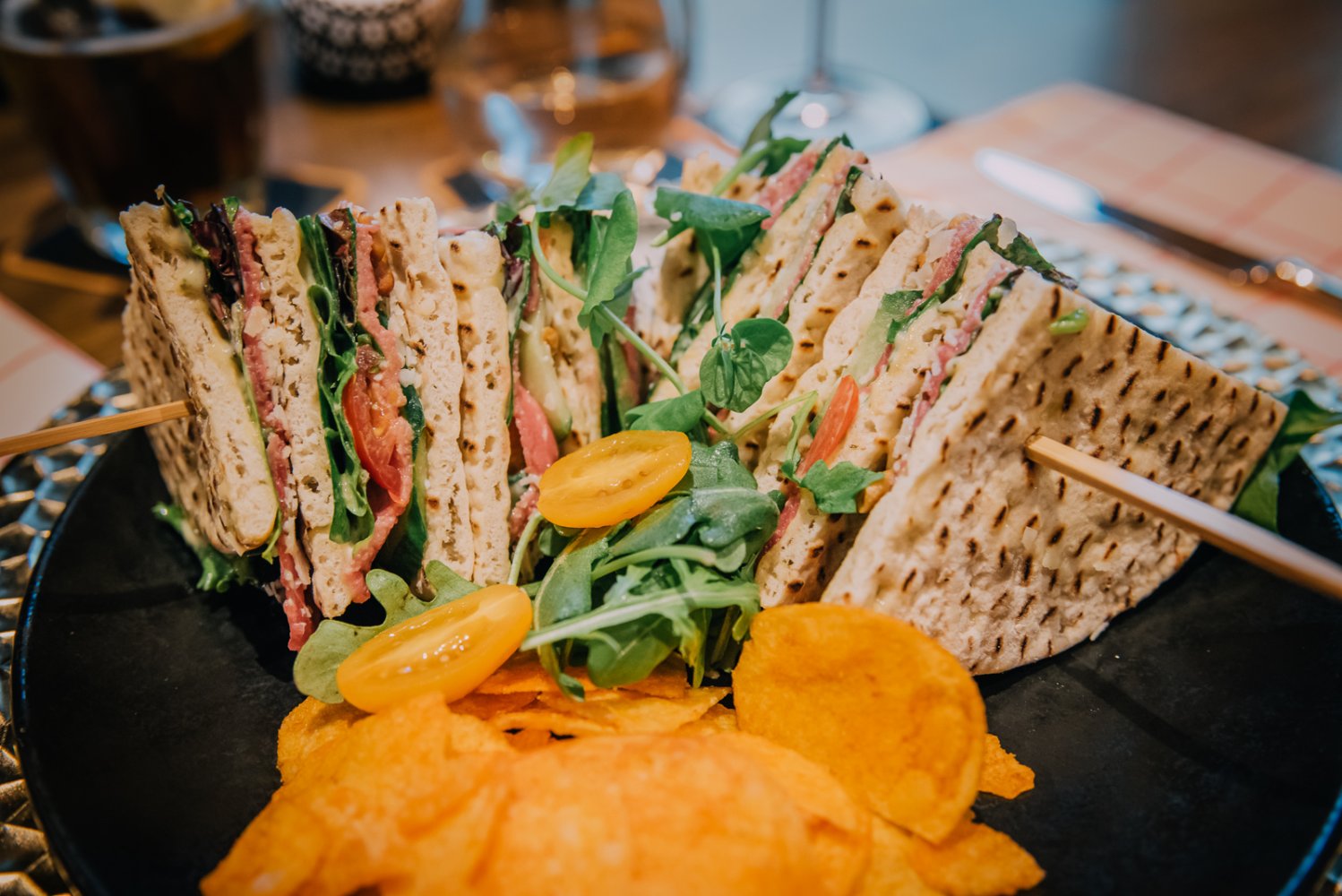 Ik kies voor de Club Carpaccio. Deze clubsandwich heeft een leuke variatie op de clubsandwiches die normaal gesproken geserveerd worden: de clubsandwich is namelijk gemaakt met viking brood. Dit Zweedse flatbread zorgt voor een hartige bite en een unieke smaakbeleving! De sandwich is rijkelijk belegd met overheerlijke rundercarpaccio, Parmezaanse kaas, pijnboompitjes en een zachte truffelmayonaise. Dit alles zorgt voor een smaakexplosie in mijn mond! De flinke clubsandwich wordt geserveerd met een frisse salade en hartige paprikachips. Dit maakt het gerecht helemaal af! Ik ben enorm fan van mijn gekozen gerecht!