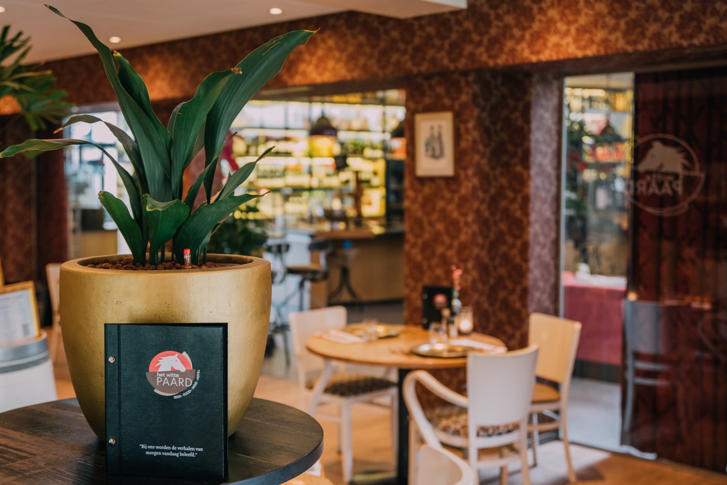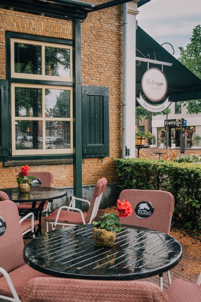 Vandaag gaan mijn moeder en ik samen een dag op pad in het altijd gezellige Etten-Leur. We starten de regenachtige middag met een lunch bij hotel-restaurant Het Witte Paard. Het pand valt meteen op wanneer we hierlangs lopen: het is authentiek en de kleine witte beelden van paarden rondom het terras zijn een echte eye-catcher. Er zitten een aantal mensen op het terras ondanks de regenbuien en het oogt meteen gezellig.