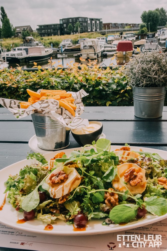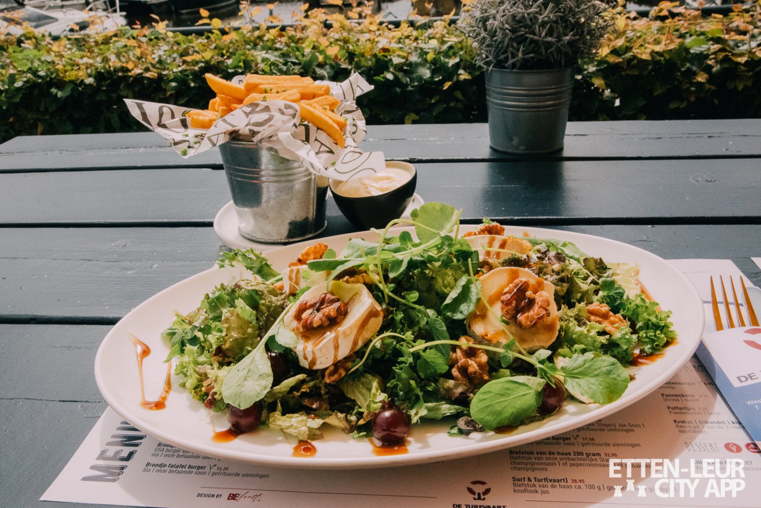 Dit karaktervolle donker tarwebier met hints van karamel en abrikoos heeft een romige, licht zoete afdronk. Op de lunchkaart staan veel verschillende gerechten: gegarandeerd voor ieder wat wils! Sommige lunchgerechten worden gemaakt met lokale producten en dat maakt ons extra nieuwsgierig. De keuze valt dan ook op de Beachclub Turfvaart en de salade met warme geitenkaas.