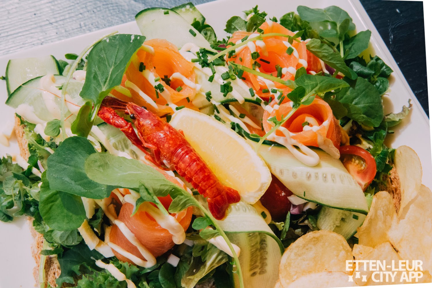 De Beachclub Turfvaart is een rijkelijk gevulde sandwich van (h)eerlijk molenbrood van bakkerij Mark Elias en is prachtig belegd met gerookte zalm, bieslook roomkaas, rode ui, komkommer, tomaat, ei, sla, kruidenmayonaise en een frisse honing mosterd dressing . Deze vullende sandwich wordt samen met seasalt chips geserveerd. Het rode rivierkreefje bovenop maakt het perfecte plaatje van dit gerecht af!