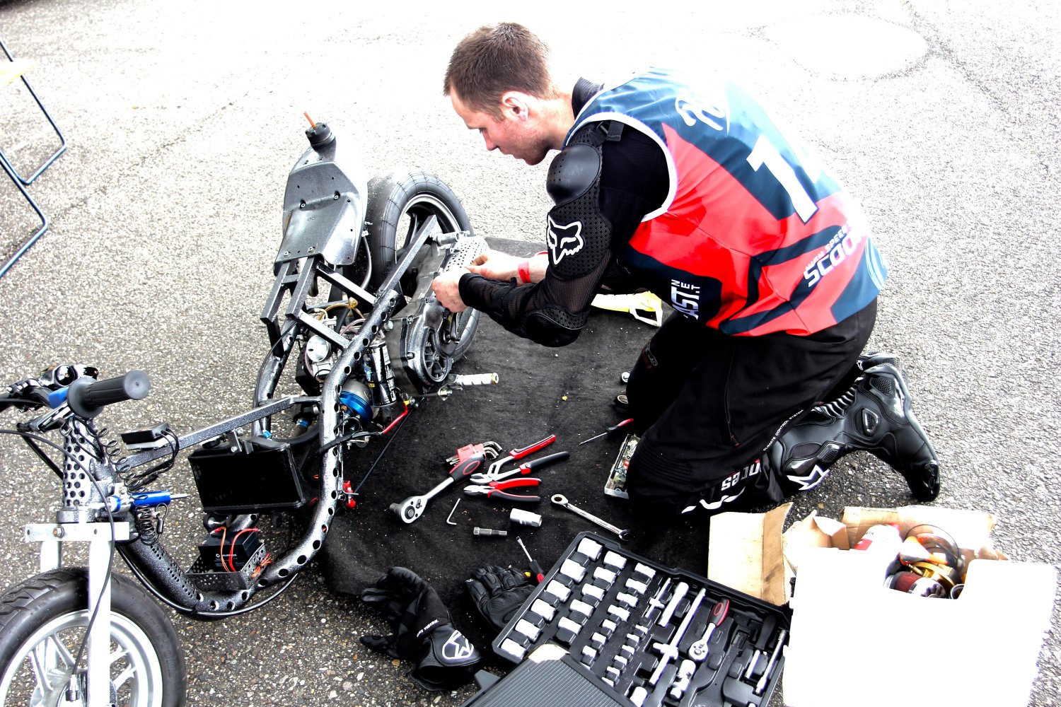 Deze lag bijna op het asfalt op z'n mini.
