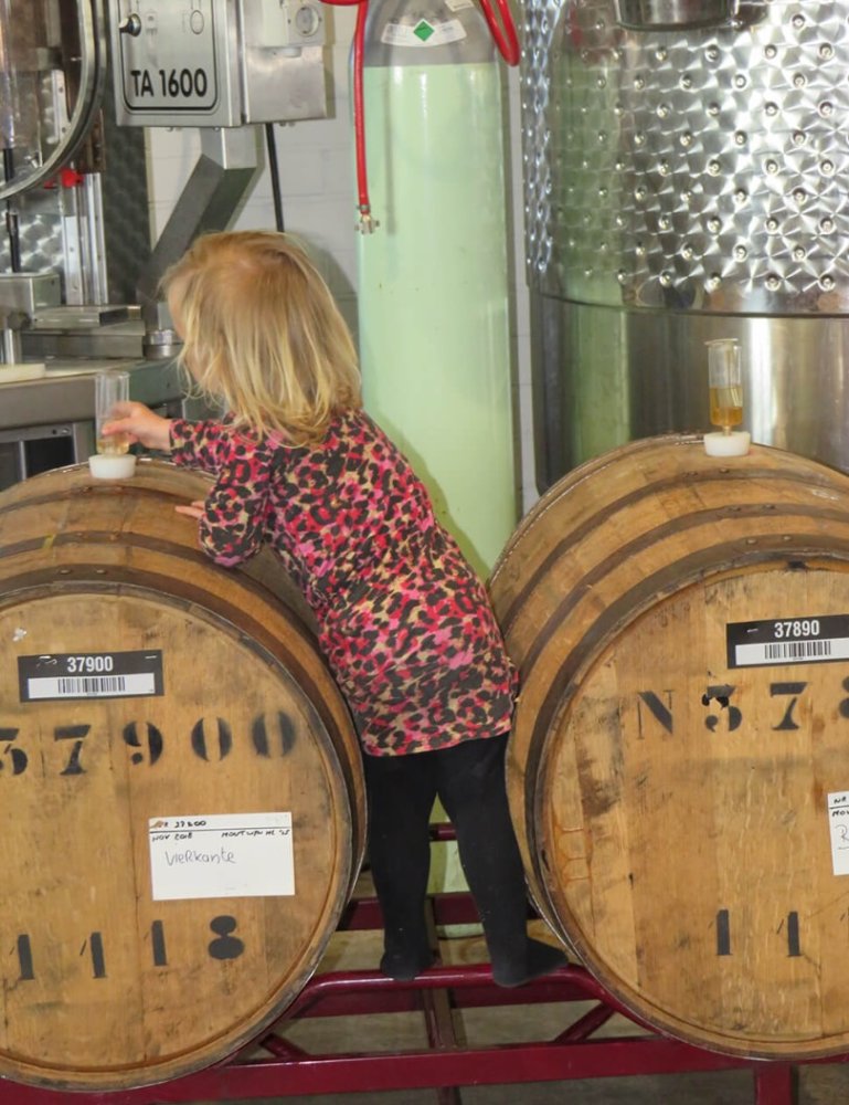 Terwijl ik luister naar Jeroen en af en toe naar Wendy, dribbelt er een mini-brouwerinnetje van anderhalf jaar rond, die flesjes wil openmaken, aan hendels trekt bij de ketels, op vaten klimt en gezellig meekletst. Een echt familiebedrijf.