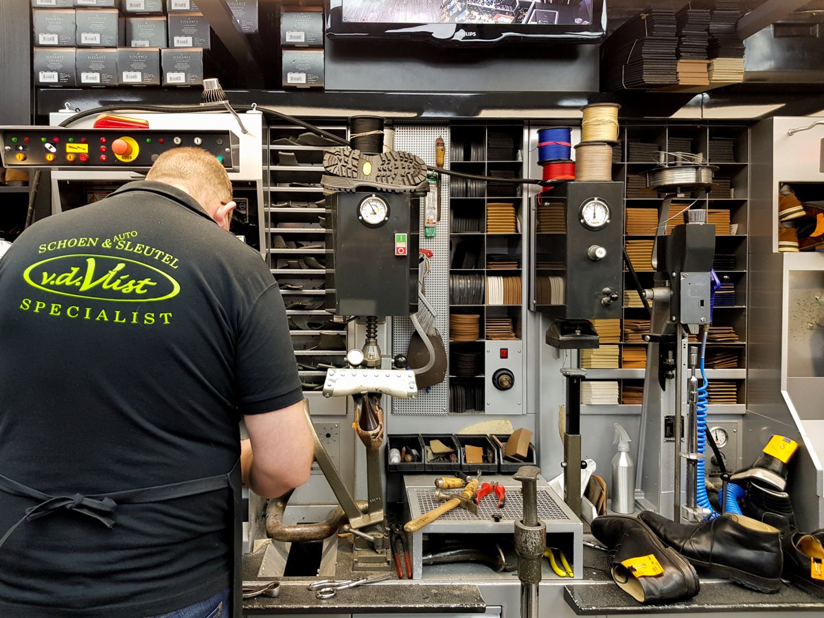 Dit is pas échte ambacht! Al ruim 45 jaar behoort schoenreparatie tot de kerntaak van deze schoenmaker. Schoenmakerij van der Vlist is goedgekeurd door het Schoenmakers Gilde en daarmee hebben zij het unieke recht om te werken met originele schoenonderdelen van Avang, v. Bommel, van Lier en Greve. Ook voor het bijmaken van (auto)sleutels, het slijpen van je messen en schaatsen en het vervangen van jouw slot kun je hier terecht. Schoenmakerij van der Vlist verkoop buiten dit alles ook een mooi aanbod aan lederwaren.