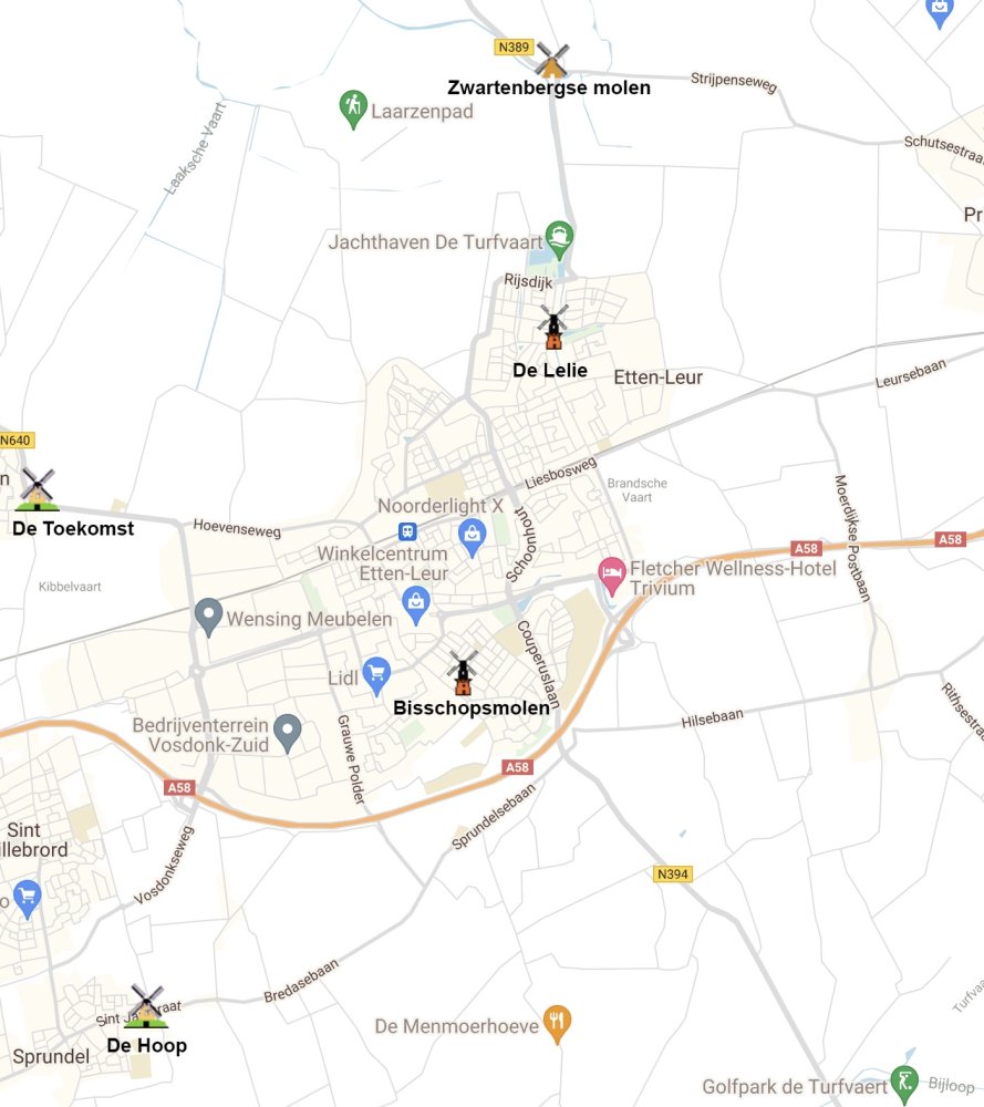 Etten-Leur telt drie fraaie molens en 1 molenstomp. De drie molens zijn regelmatig toegankelijk voor publiek. Dat is ook het geval tijdens de 30ste editie van de West-Brabantse Molendag (maart) en tijdens de Nationale Molendag (mei).