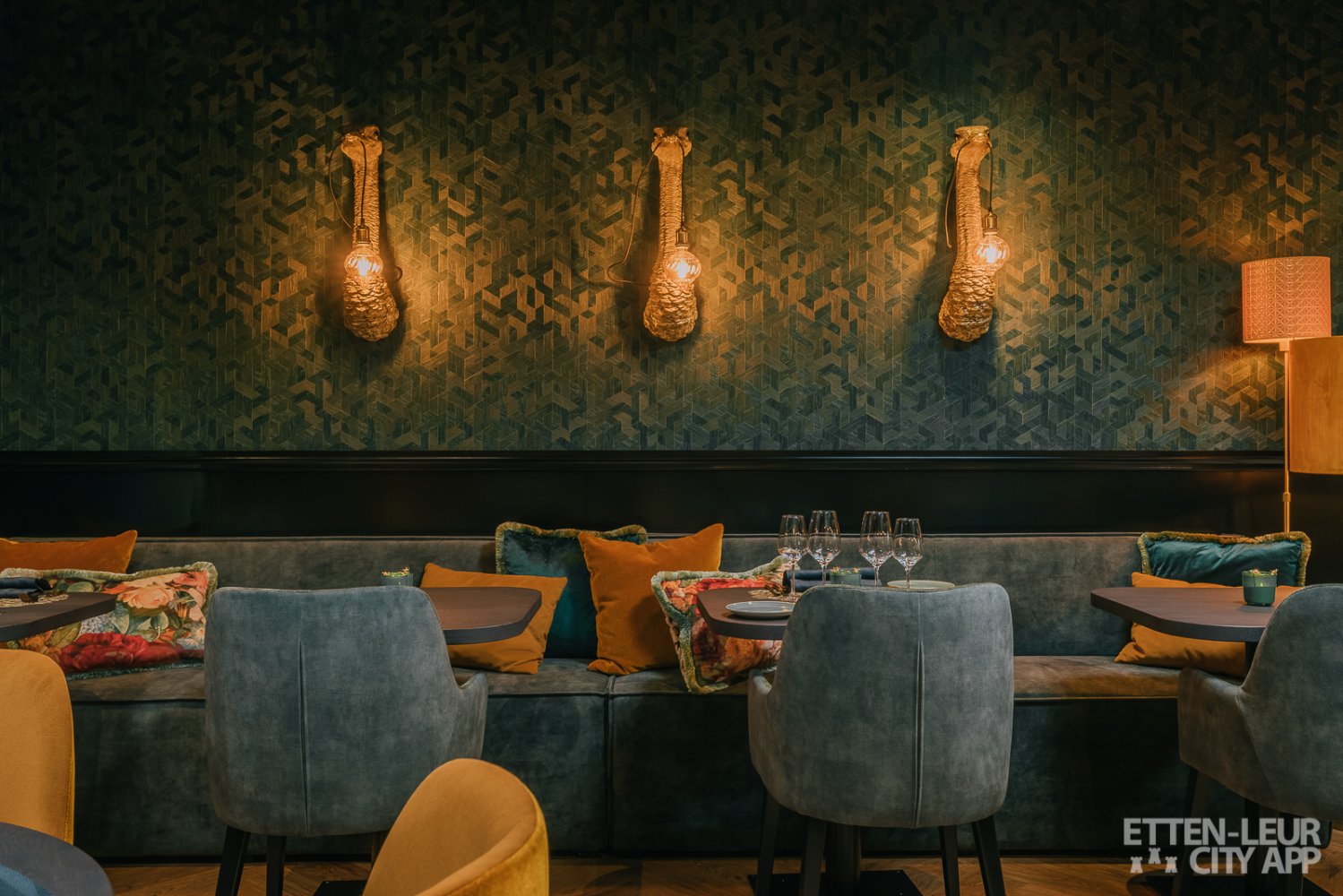 Het interieur van het restaurant is geïnspireerd op de de Engelse jaren ‘20, veel Art Deco elementen en gestyld met een knipoog naar The Great Gatsby.