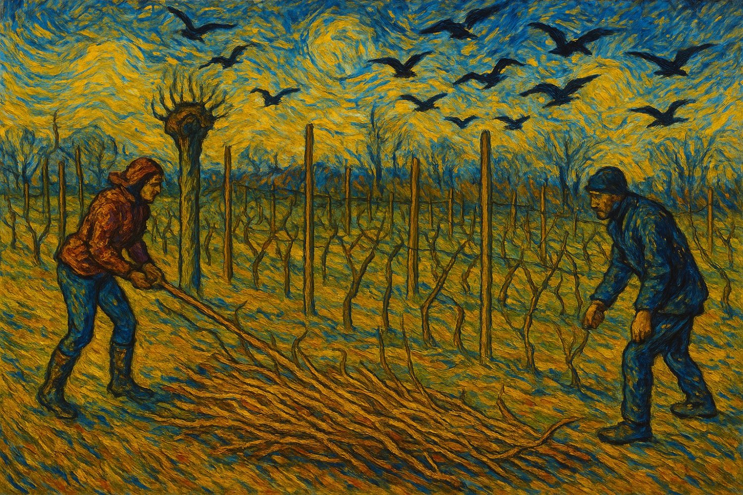 Bij De Menmoerhoeve staan vele tientallen knotwilgen. Het waren de favoriete bomen van Van Gogh, hij tekende en schilderde ze regelmatig. In de winter en vroege voorjaar van 2024/2025 zijn de wilgen geknot. De dikke takken en dunne tenen zijn gebruikt voor het aanleggen van het labyrint. Duizenden kale - maar veelal nog steeds levende - takken en tenen zijn 1 voor 1 de grond in gestopt. Afgelopen zomer was het labyrint al aardig groen. Op dit moment zijn we wilgentenen aan het bijplanten.