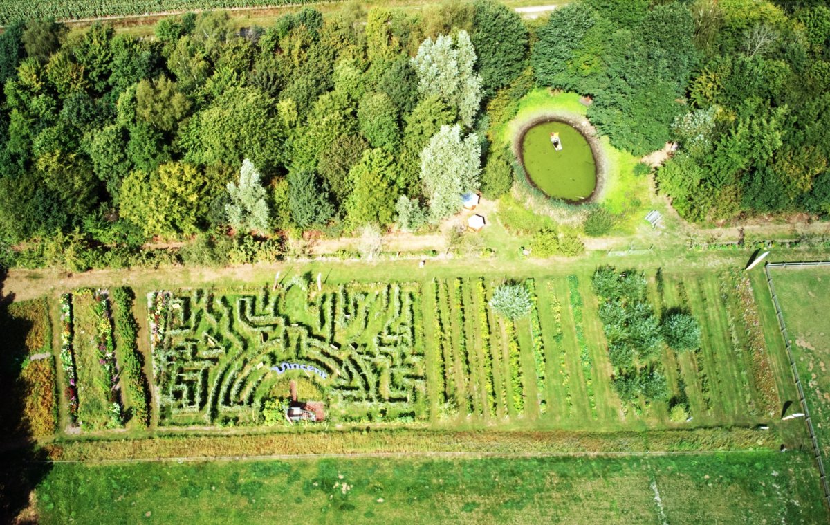 Rondom het labyrint zijn 5 verschillende - streekeigen - soorten haagplanten geplant: haagbeuk, wilde liguster, gele kornoelje, kardinaalsmuts en mispel.